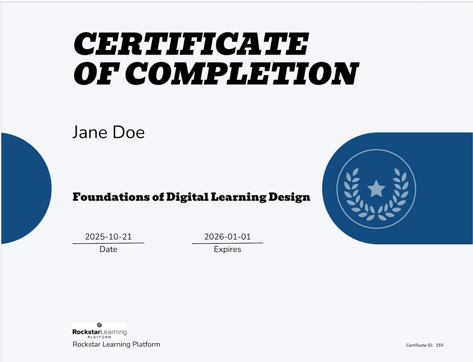 - Certificate ID (unique per completion)