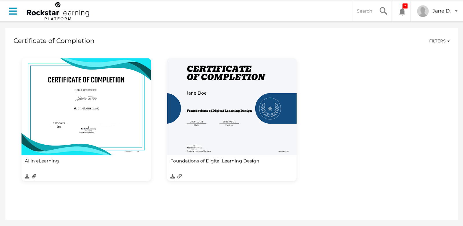 Learners can now receive certificates of completion when they finish a course. Certificates recognize achievement, support compliance tracking, and provide learners with proof of completion that they can download, view, or share.