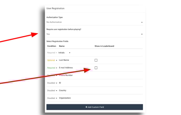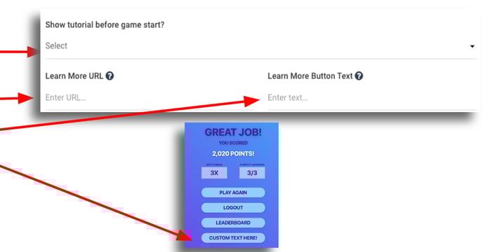 • The custom fields can also be included in the Game Over Leaderboard and analytics, by checking the “Show in Leaderboard” box