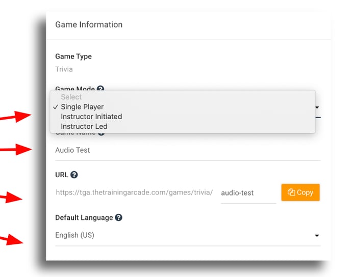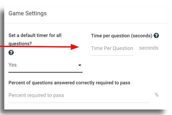 • Pass % – Enter a percent of correct answers that players must achieve to pass