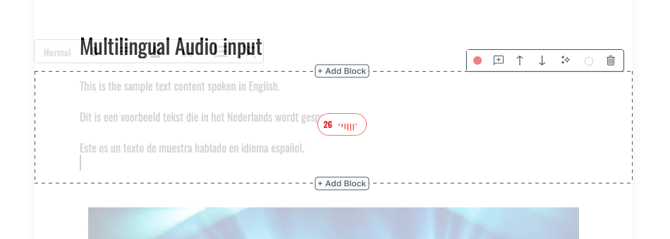 - This feature allows content authors to effortlessly record corresponding audio for textual content directly within the platform, regardless of the language.