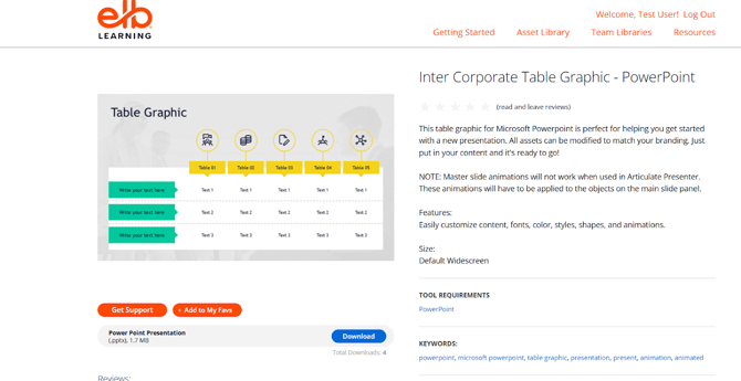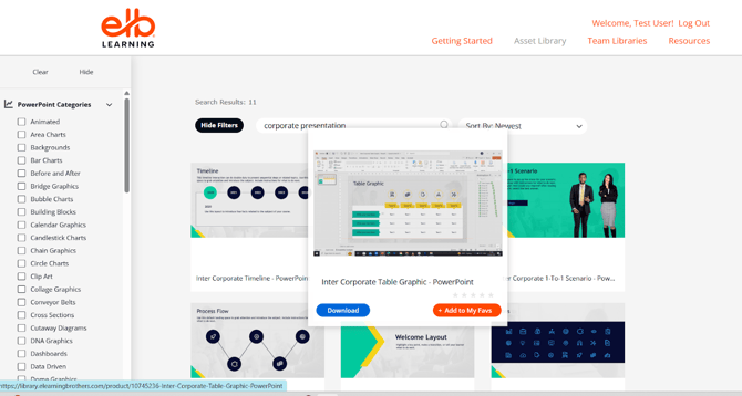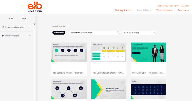 The PowerPoint Template Library within the Asset Library provides professionally designed PowerPoint templates and slide layouts that can be used to create engaging presentations and training materials. These templates help maintain visual consistency and reduce development time.