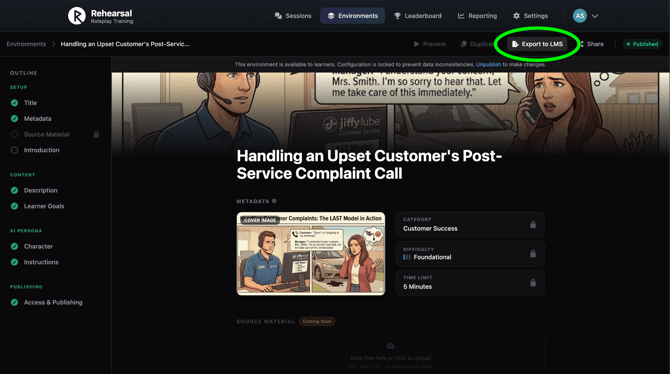 - Clear path display (e.g., "Environments > Sales Training > Learners > John Smith > Sessions")